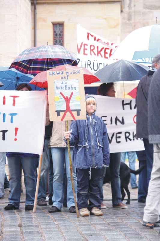 Am 14. September demonstrierten trotz strömendem Regen mehrere hundert Personen vor dem Münster St. Georg gegen den Mautausweichverkehr, für die Fortsetzung der B25-Sperrung für diesen Verkehr und für eine Ausdehnung der Sperrung von Donauwörth bis Feuchtwangen. Nach Ansicht der Redner, darunter Mitstreiter aus Harburg, Möttingen, Feuchtwangen und Dinkelsbühl lässt sich nur so schnell und für alle Anlieger Entlastung vom Schwerlastverkehr erreichen.